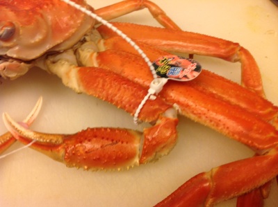 このシーズン、日本海のズワイガニが旬になります。高価な食材ですが好きなお客様がみえますのでよく仕入れするんです。黄色のタグの越前はあまり手に入りませんが山陰の松葉ガニが多いんですが先日初めて新潟産を仕入れました。