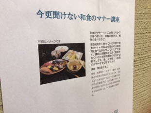 さて、来週に迫りました、今更聞けない和食のマナー講座。まだお席ございます。今週の金曜日まで受付ております。お時間ある方是非ご参加くださいませ。