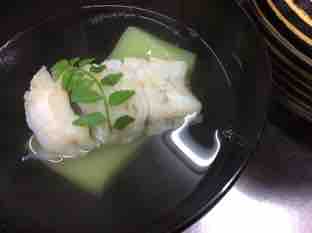 グリンピースの葛豆腐と鮎魚女のお椀です。