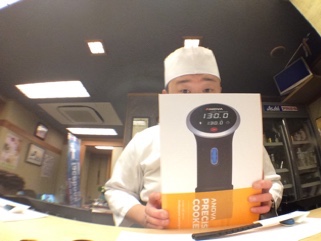 情熱弁当のオーナー、原田さんに教えていただいた真空調理のマシン。これで温度調整できて、タイマーも付いている優れもの。スマホと連動して操作するみたいです。