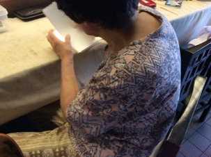 お袋は天ぷらの紙を折ったり