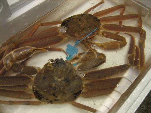 今日仕入れたのは兵庫浜坂港の「松葉ガニ」バリバリの活け物です。値段は9450円(税込み)