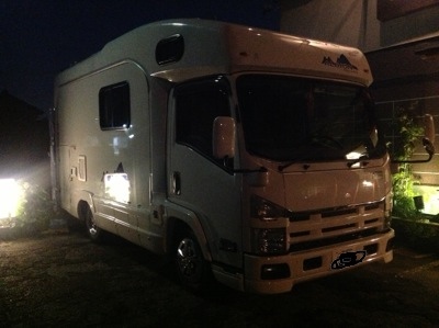 ちょっと暗いのでわかりづらいですがキャンピングカーです。6人用ベッドもあってシャワールームやキッチン、トイレも付いてます。