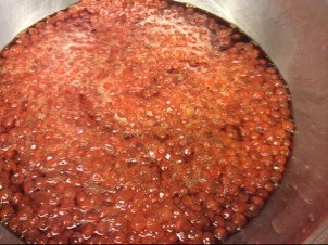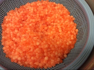筋子をぬるま湯でほぐし、しっかり余分な筋を取り除き
