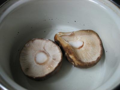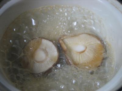 先ず、蓋付の鍋に椎茸を入れ椎茸の半分ぐらいまで酒をいれ塩を少々入れます。