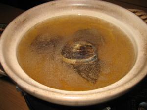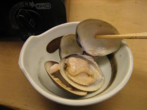 だし汁は昆布だしに塩コショウと薄口醤油で味付け。先ず、蛤だけを煮てもらいます。