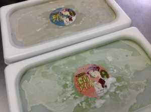 知人のお茶屋さんがプロデュースしたプレミアムな抹茶アイスとほうじ茶アイスです。