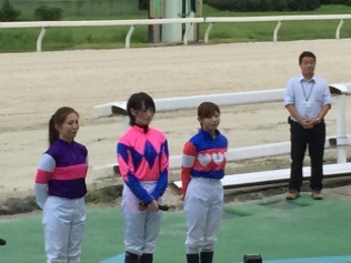 レース終了後に女性ジョッキー3人で共同記者会見。