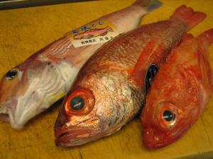 若狭ぐじにのど黒、釣りきんき。どれも抜群の鮮度。特にのど黒は最近にないいいものです。値段がちょっと高いのでもちろん切り売りします。握ってもOK。
