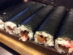 楽山の恵方巻、今年も無事に巻き終わり、後はお引き取りのお客様を待つのみです。