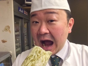 普段の太巻とは違ってまるかぶりするのでかんぴょうなどの具材を切り込み、今年も皆さんの開運を願って巻かせていただきました。