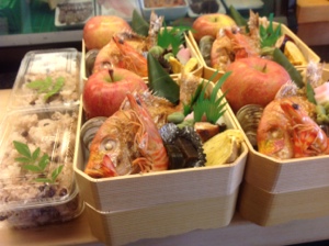 お祝いの折詰です。今日は入学式だそうでそのお祝い折詰。赤飯も蒸しました。