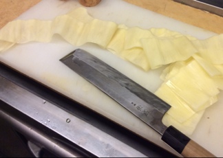 桂剥きして打ち込み。手間がかかりますが料理ってそんなもんです(笑)