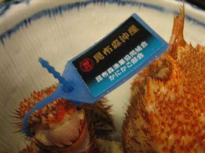 今日は珍しいものを入荷。タグ付のずわいがにはよく見かけますが