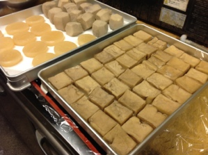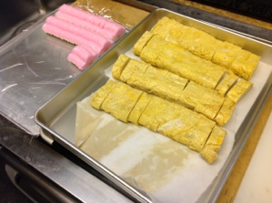 地上げとか丘上げとか言いますが、こうして煮物をペーパータオルなどをひいたパイレッシュに並べます。こうしないと煮物の出汁で盛り付けしたお弁当が出汁でベタベタになってしまいます。