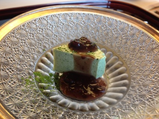 デザートです。抹茶のババロア。これも料理屋さん顔負けの一品でした。