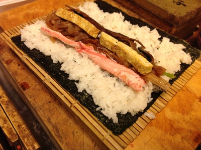 かんぴょう、椎茸、穴子、カニ、ほうれん草、おぼろ、玉子、7種類の具材のハーモニーをお楽しみください!