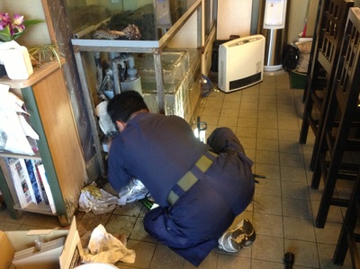 水槽のポンプのベアリングがギブアップ。交換していただきました。