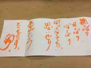 先日、お馴染みさんがお帰りになった後、テーブルマットにこんな事が書いてありました。