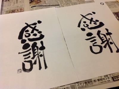感謝、という見本を選んで挑戦です!