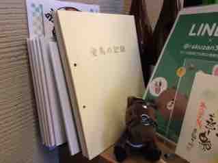 カウンターの隅にひっそりおいてある愛馬のアルバム。これを手にする方は愛のある方が多い。
