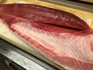 高知産、本鮪。脂はちょっと薄い←ボクの頭みたい笑笑ですが、鮮度はいいですよ。味もいい。お値打ちでおすすめです。その他、特大天然ふぐ←これマジでお値打ち北陸の毛蟹←北海道の毛蟹は普通ですが北陸は珍しい。初鰹天然鮑←多分蒸し鮑にします。明石の天然鯛、鱈の白子、赤貝、白魚、三河のあさり。ウニは北海道厚岸浜中産。今日は市場で○万円、使ってきました笑笑でも今夜の予約はゼロでーす♪ぜひにー、ご来店下さいませー。