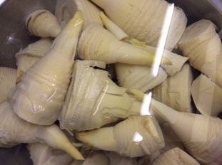 この筍、市場に出回るものより大きいのですが柔らかいんです。掘れたてっていうこともあると思いますが茹で上がりも早い。皮を剥くと筍のいい香りがしてきます。