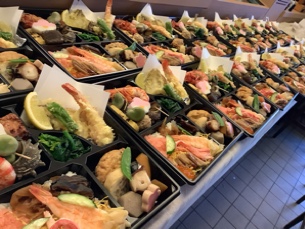 焼き物を焼き、揚げ物を揚げ、シャリを炊き、煮物の出汁を切ります。