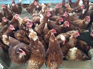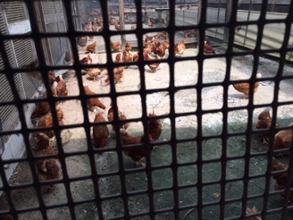 鶏舎の中には鶏が放し飼いになっていました。