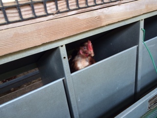 鶏は産卵したくなると自分でこの巣箱に入って産卵するそうです。このしつけもするんですって。