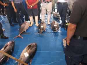 この時季は一番漁獲の少ない時期でちょっと寂しい感じはしましたが子マグロが30本ほど水揚げされ