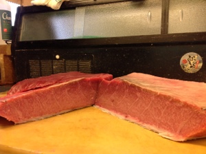 生のインドマグロです。物も悪くなく上々の脂。ニュージーランド産ですがコンディションもいいですね。