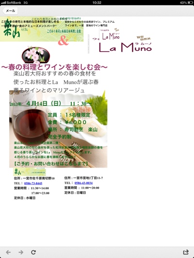 さて、迫ってまいりました、ワインショップ「La Muno」さんとのコラボ企画、春の料理とワインを楽しむ会