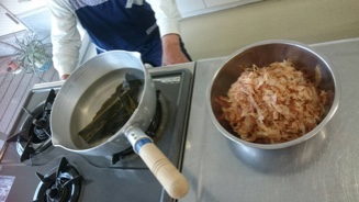 でも、今日はちょっとハードルを上げて実際楽山でやっている出汁の取り方をやってもらいました。