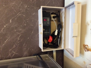 水槽でした。温度センサーが海水で錆びてしまいまして、しかもコンセントもヤバイ状態。