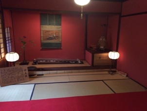 中に入ると、紅殻の派手な内装。さすが遊び人だった前田利家の影響が見受けられます。