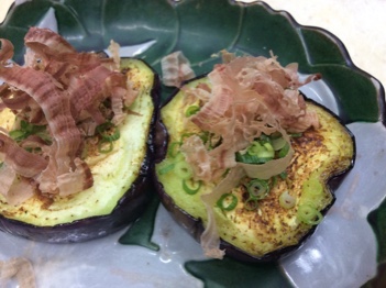 フライパンにほうろく菜種油を引いて蒸し焼きに。醤油と浅葱、削りたても鰹節をトッピング。