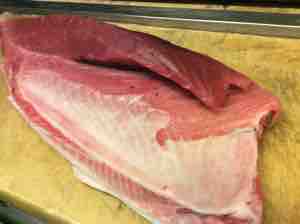 長崎産。久々に見たこのサイズのメジマグロ。本マグロの子供ですが20キロもあれば大人のマグロにも勝るとも劣らない味です。赤身もトロもいい味。氷の中で熟成させて、5日は美味しく召し上がっていただけると思います。