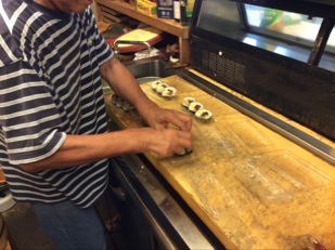 何百って寿司を夫婦で仕上げて。