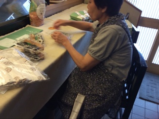 ボクがガリを入れてホチキスで留めます。