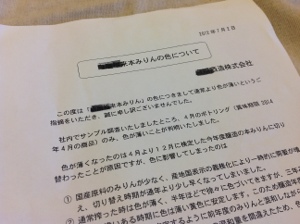 そして今回、いつもの味醂よりシャビシャビ、色が薄いんですな。これまたメーカーに連絡。