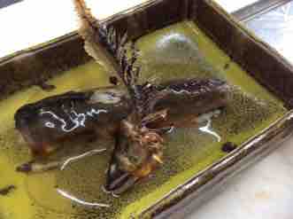 素焼きした鮎に豆腐けんちんを詰めて蒸しあげました。