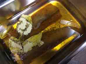 秋刀魚のコンフィの要領で米油とほうろく油に漬け込みました。