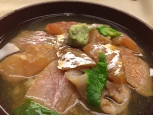 ところが、釣り上げた場所を聞いてちょっと不安に。福井であげたそう。普段、楽山では三河産、師崎などの太平洋のものを使っています。こんなことを書くとお叱りを受けるかもしれませんが、北陸の真鯛は三河産のそれより1枚落ちます(そうでないとおっしゃる方、ぜひ北陸の美味い鯛を教えてください)。潮の流れなのか、締め方なのか。どうしても身持ちが悪んですよね。