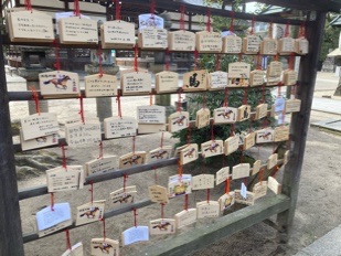 中学受験の甥っ子の合格御守り。そして勝馬御守り。そして愛馬の無事を祈って絵馬に書き込んでお参りするのがルーティーン。
