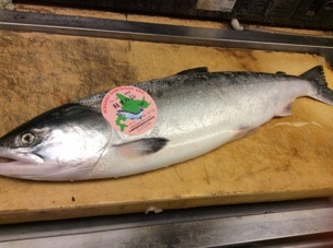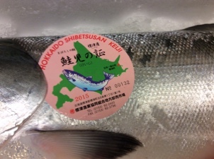 標津の沿岸で取れる鮭の20000匹に1匹とも言われる非常に希少な鮭で今日の名古屋の市場には3匹のみ入荷があったそうです。