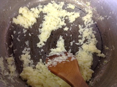 玉ねぎをバターで炒めて