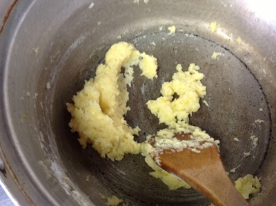 後は蟹を加えて塩コショウで味付け。楽山のカニクリームコロッケにはチーズも入ってます。