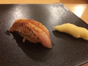 鰆。小ぶりの握りなので懇親会の料理を食べたあとでも食べられますね。