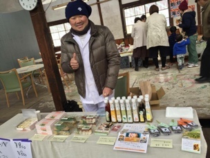 今回のマルシェは郊外にあるところでのんびりした雰囲気。ポン菓子があったり、野菜を売っていたり、楽山と取引のあるお豆腐屋さん、地元で有名な乾物屋さん、異業種交流で名刺交換させていただいた方など出店者のみなさんは面識のある方ばかりでボクも案外リラックスして販売できました。